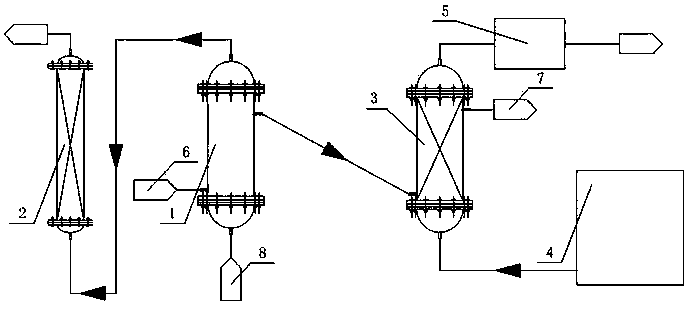 1.一種高濃度廢水回收凈化試驗(yàn)裝置,其特征在于:是由酸化反應(yīng)塔(1)、堿液吸收塔(2)、催化反應(yīng)塔(3)、臭氧發(fā)生器(4)、尾氣破壞器(5)、進(jìn)液蠕動(dòng)泵(6)、出液蠕動(dòng)泵(7)及風(fēng)機(jī)(8)組成,酸化反應(yīng)塔(1)、堿液吸收塔(2)和催化反應(yīng)塔(3)均由頂部封頭、圓柱體、底部封頭和曝氣板(9)組成,頂部封頭與圓柱體的法蘭之間、底部封頭與圓柱體的法蘭之間設(shè)置曝氣板(9),底部封頭設(shè)置進(jìn)氣口,頂部封頭設(shè)置出氣口,圓柱體底部設(shè)置進(jìn)液口,中部設(shè)置加藥口,頂部設(shè)置出液口;酸化反應(yīng)塔(1)進(jìn)液口與進(jìn)液蠕動(dòng)泵(6)出口連接,酸化反應(yīng)塔(1)出液口與催化反應(yīng)塔(3)進(jìn)液口連接,催化反應(yīng)塔(3)出口與出液蠕動(dòng)泵(7)進(jìn)口連接,最終廢水依靠出液蠕動(dòng)泵(7)排入指定容器;酸化反應(yīng)塔(1)進(jìn)氣口與風(fēng)機(jī)(8)出口連接,酸化反應(yīng)塔(1)出氣口與堿液吸收塔(2)進(jìn)氣口連接,堿液吸收塔(2)出氣口排空,臭氧發(fā)生器(4)出氣口與催化反應(yīng)塔(3)進(jìn)氣口連接,催化反應(yīng)塔(3)出氣口與尾氣破壞器(5)進(jìn)氣口連接,尾氣破壞器(5)出氣口排空。