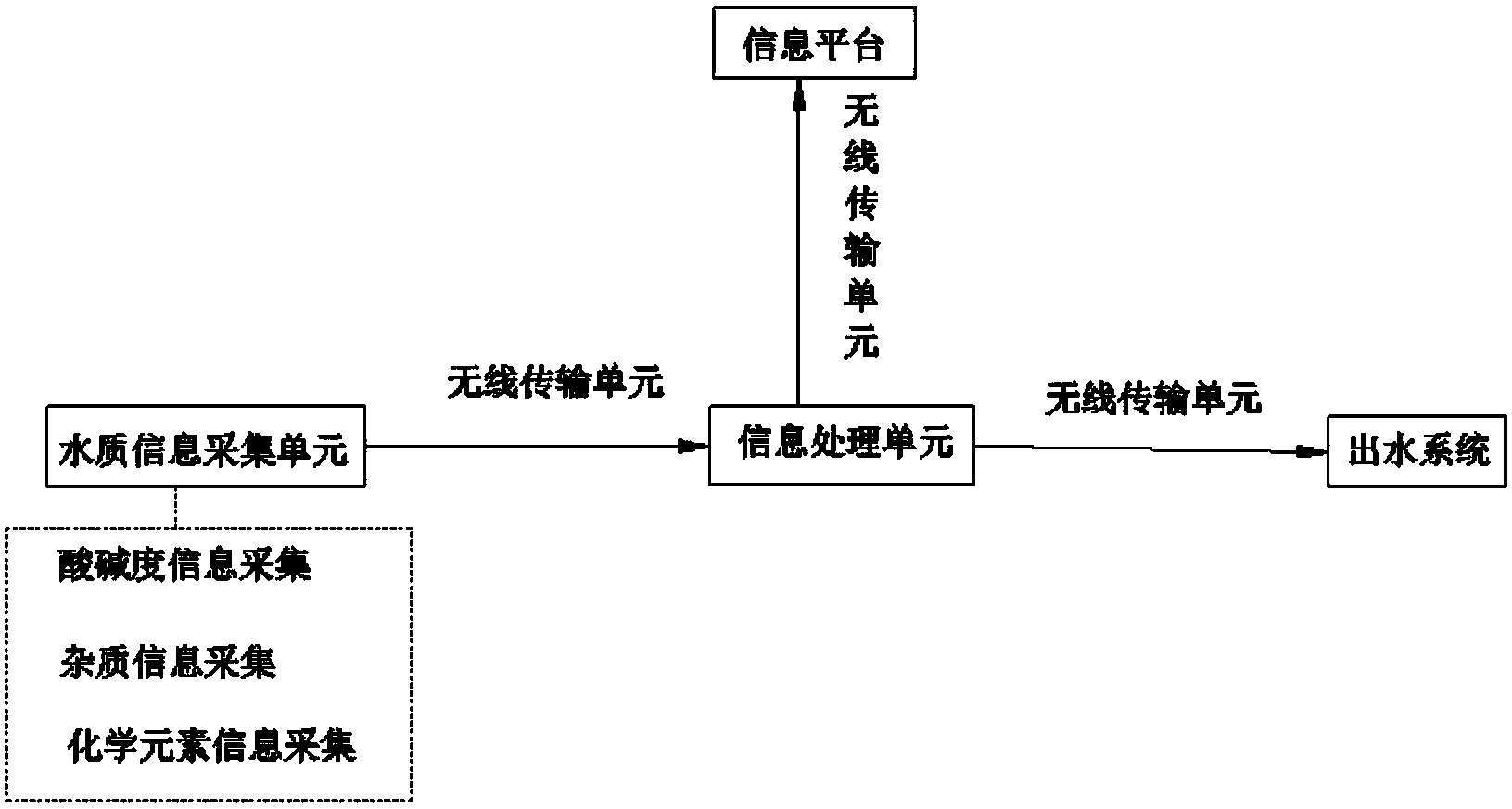 進一步的,所述信息采集單元包括酸堿度信息采集、雜質信息采集和化學元素信息采集,所述信息采集單元設置在進水系統的進水口。