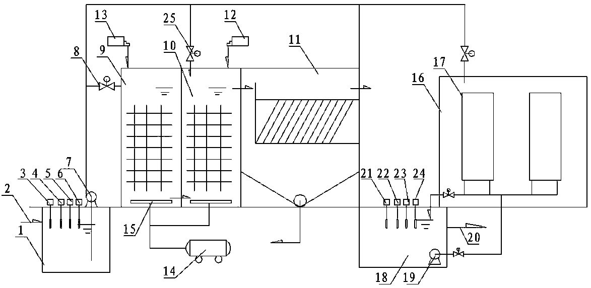 所述收集池配設有進水檢測儀、進水濁度檢測儀、進水氨氮檢測儀和進水總磷檢測儀。