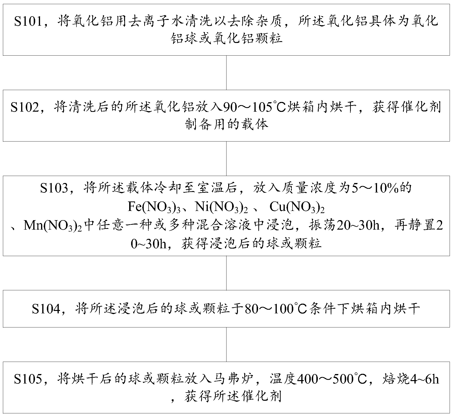 將烘干后的球或顆粒放入馬弗爐,溫度400~500℃,焙燒5h,獲得所述 催化劑。