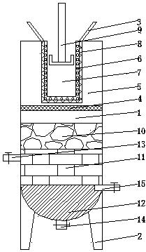 1.一種改進的船舶水處理設備,其特征在于:包括外殼,所述外殼底部設有支撐腳,所述外殼內部從上到下依次設有進料口、過濾區和沉淀區,所述過濾區和沉淀區之間設有過濾網A,所述過濾區包括過濾組件和包裹于過濾組件外的過濾腔,所述過濾組件包括帶有濾孔的濾筒以及濾筒外的過濾網,所述濾筒內設有推壓組件,所述沉淀區從上到下依次設有植物型沸石處理區、生物酶處理區以及螺旋槽。