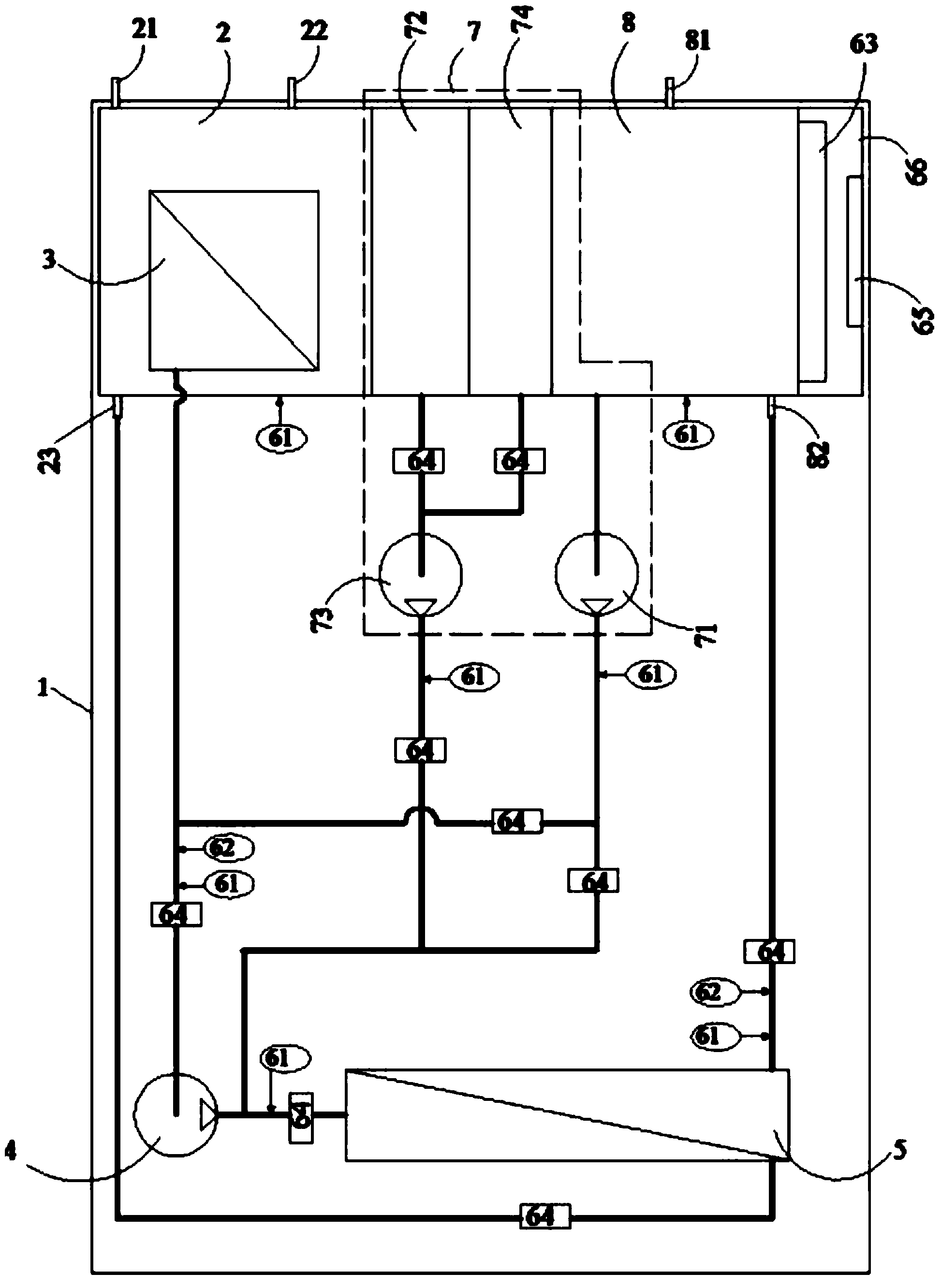 3.根據權利要求1所述的一種實現污水零排放的中水回用智能一體化設 備,其特征在于,所述自動控制系統包括壓力傳感器、水質傳感器、DCS控制 系統、執行元件、觸摸屏電腦以及控制柜;所述壓力傳感器和水質傳感器把數 據傳遞到DCS控制系統,DCS控制系統和觸摸屏電腦向執行元件下達指令,由 執行元件實施操作,實現自動控制。