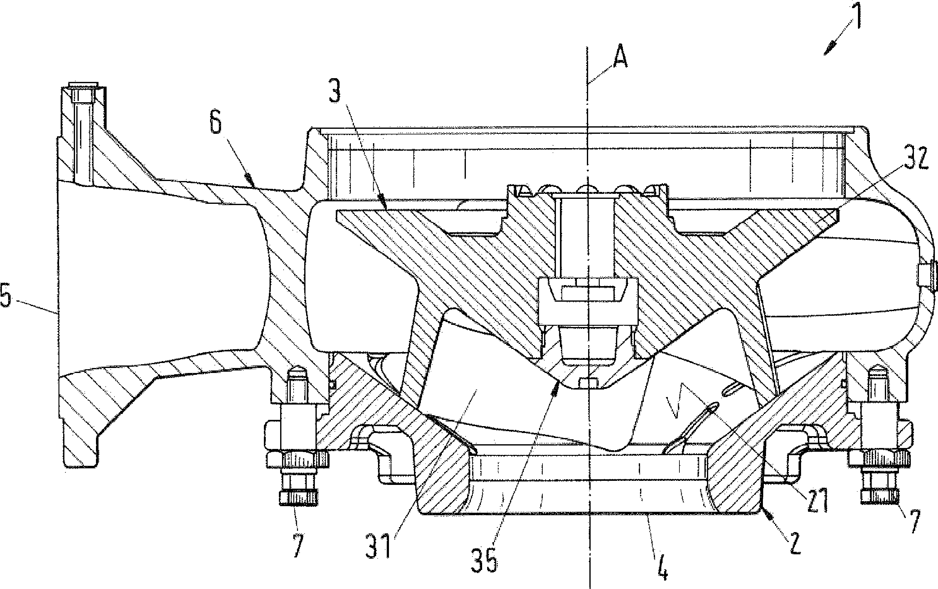 在承載體構造成截錐形時可以實現關于固體物質的特別好的通過特性。通過承載體的傾斜有效抵抗了固體物質的積聚。那樣的話,葉輪構造成半軸向葉輪。
