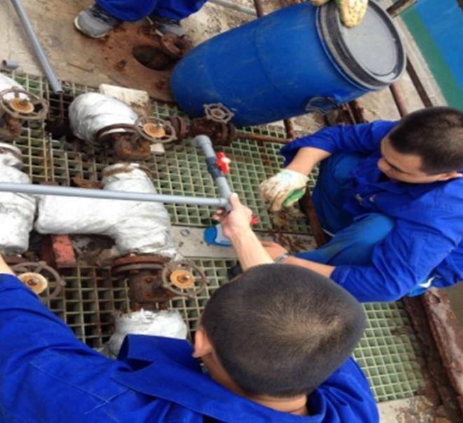 加藥方案進(jìn)行藥劑投加,以水體CODCr一步藥劑處理去除率40%-50%為考核標(biāo)準(zhǔn)