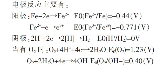 微電解技術,又稱內電解、鐵還原、鐵炭法、零價鐵法、鐵屑過濾法等技術。是一種被廣泛研究和應用的廢水處理方法。微電解工藝在廢水處理中的應用始于20世紀70年代,前蘇聯的科學工作者把鐵屑用于印染廢水的處理,20世紀80年代此法引入我國[3]。微電解對高濃度、高色度、難降解等有機廢水有獨特的處理效果,如染料、印染、農藥、制藥、化工等工業廢水處理均可以用微電解作為預處理手段,從而實現大分子有機物的斷鏈、發色與助色基團的脫色,提高廢水的可生化性。