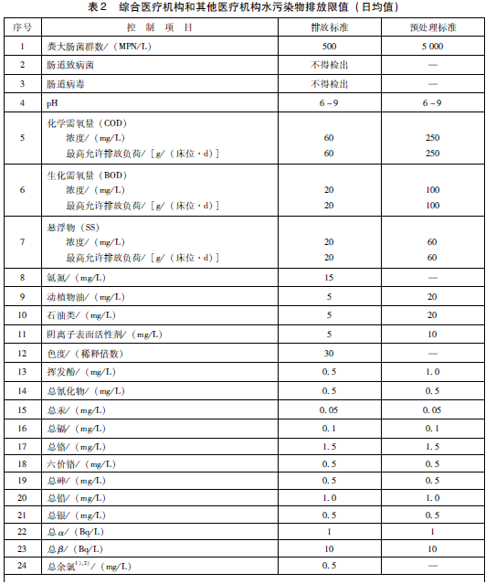 縣級以下或20張床位以下的綜合醫療機構和其他所有醫療機構污水經消毒處理后方可排放。