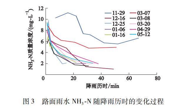 1.3.3路面雨水徑流NH3-N變化規(guī)律