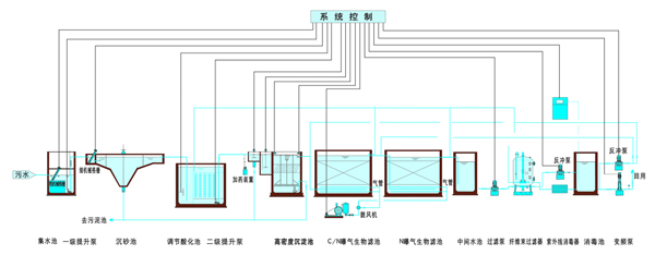 生物曝氣濾池(Biological Aerated Filter)簡稱BAF,是80年代末在歐美發(fā)展起來的一種新型生物膜法污水處理工藝。該工藝具有去除SS、COD、BOD、硝化、脫氮、除磷、去除AOX(有害物質(zhì))的作用,其特點是集生物氧化和截留懸浮固體與一體,節(jié)省了后續(xù)沉淀池(二沉池),其容積負荷、水力負荷大,水力停留時間短,所需基建投資少,出水水質(zhì)好:運行能耗低,運行費用省。