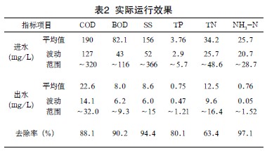 在近一年的運(yùn)行中,系統(tǒng)基本運(yùn)行在MLSS為2000 mg/L、回流比為50%的工況下,其實(shí)際運(yùn)行效果見表2。