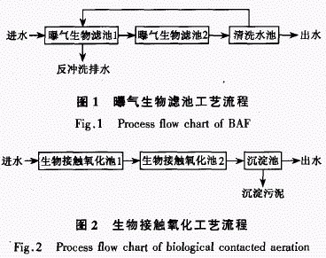 a.采用生物膜法中的曝氣生物濾池及生物接觸氧化池對秀峰工業城污水處理站污水有較好的處理效果,BOD 5,CODcr及懸浮物去除率一般在80%以上.曝氣生物濾池的處理效果比生物接觸氧化池稍好。