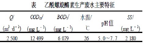 駐馬店華中醫(yī)藥集團(tuán)以淀粉等為原料采用發(fā)酵法生產(chǎn)乙酰螺旋霉素,其生產(chǎn)性廢水水質(zhì)如下表所示。