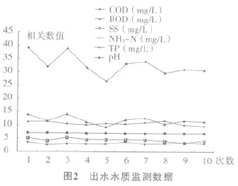 該工程于2010年初竣工。經過一段時間的調試運行,設備運行一切正常,并無異常出現;正式投入運行后,設備穩定、出水水質也較為穩定。經大連市環境監測中心連續數天監測,處理后出水檢測結果穩定,沒有出現任何超標現象,出水水質各項指標均優于國家排放標準DB 21/1627—2008 《遼寧省污水綜合排放標準》中排入城鎮收集管網的排放標準。整個工程達到了設計要求。具體出水情況如圖2所示: