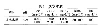 該廢水所含污染物主要為呈溶解、膠體和懸浮等物理形態的有機物質,易于生物降解。具體廢水水質見表1。