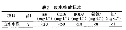 考慮到處理后的廢水需要作為中水回用.出水水質要求較《肉類加工工業污水排放標準》(GB 13457--1992)嚴格,需要達到《城市污水再生利用一城市雜用水水質》要求的中水回用標準。出水具體水質指標見表2。來源:谷騰水網