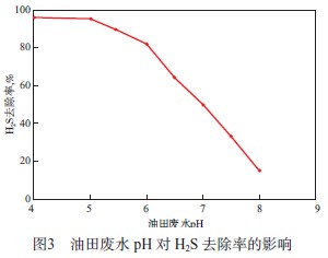 2.2 油田廢水 pH 對 H2S 去除率的影響