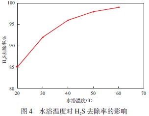 2.3 水浴溫度對 H2S 去除率的影響