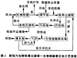 印染廢水處理方法(4)、新型內電解鐵屑過濾塔—生物接觸氧化池