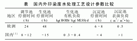 2 我國印染廢水處理現行工藝與國外大體相仿,主要以生化處理為主,但在設計參數上有很大差異。