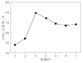 圖1初始反應液pH與CODCr去除率的關系