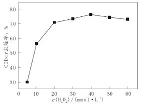 Fig.2Relationbetweenc(H2O2)andCODCrremovalrate