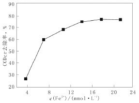 Fig.3Relationbetweenc(Fe2+)andCODCrremovalrate