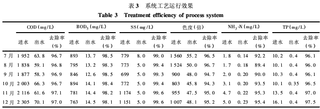 (1)本系統(tǒng)工藝適合處理進水量大、COD負荷高、成分復雜等特點的綜合印染廢水,可有效去除COD、SS和色度等污染物。按日處理量4×104 m3、COD去除率96%估算,此系統(tǒng)工藝一年可削減COD排放約28.6萬t,對周邊河道水質(zhì)環(huán)境改善有明顯的改善作用。對BOD5、SS和色度去除率可分別達98.4%、98.6%和92.8%以上,出水水質(zhì)指標穩(wěn)定達到GB8978-1996一級標準。