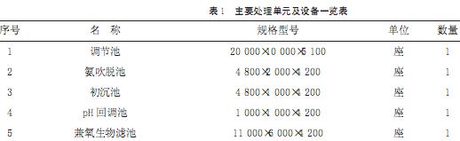 本工程采用的主要處理單元和設備列于表1。