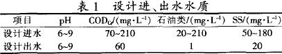機械行業廢水排放水質資料,要求處理后廢水達到《污水再生利用工程設計規范》GB50335-2002中景觀環境用水的再生水水質指標。該廢水處理站設計進出水水質見表1。