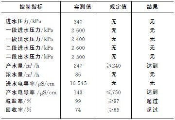 表3 反滲透系統(tǒng)運行參數(shù)
