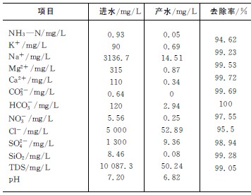 系統(tǒng)運行效果良好,產(chǎn)水性能達到了設計要求,水質(zhì)分析結(jié)果如表4所示。