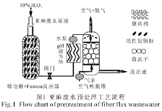 亞麻纖維制品在國際市場非常緊俏,是高檔的紡織制品。一方面,亞麻生產可以給人們帶來豐厚的經濟收入,另一方面,由于該生產的廢水中含有高濃度、難降解有機污染物,如纖維素、半纖維素及其降解產物,木質素及其降解產物,單寧、果膠、樹脂酸等,導致該廢水常呈棕黑色,有惡臭,化學耗氧量高且可生化性差,若將其直接排放會造成嚴重的環境污染。因而研究如何處理亞麻廢水以達回收再利用或達標排放,實現綠色經濟就顯得十分必要。目前對于亞麻廢水的處理,靠單一的方法很難達到預期目的,而傳統的處理工藝常采用幾種方法的有機組合[1],其中涉及生物處理的工藝要求被處理廢水可生化性要較好,廢水中有機物濃度不宜過高,但該工藝投資高且所耗時間比較長。