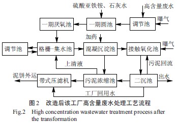 根據原有工藝處理該工廠高含量廢水存在的問題,對一期工程進行如下實施改造: