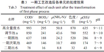 該改造工程總造價為88 萬元,改造后這些高含量廢水預處理的運行成本約為1.35 元/m3,加上進入二期處理的成本,總成本約為2.53 元/m3,其中包括藥劑費、電費和人工費,不包括折舊費和污泥處理費。