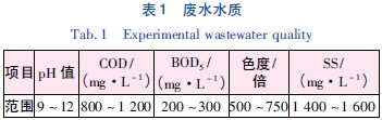 廢水取自廣州市某紡織印染廠污水處理站的調節池。該廢水組分復雜,含有染料、染化助劑以及布料漂染過程中產生的各種污染物,且由于該污水站將廢水處理過程中產生的剩余污泥回流至調節池,導致廢水的SS 濃度較高。試驗期間原水水質如表1 所示。