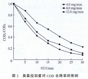 2.2 臭氧投加量對COD去除率的影響