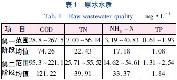 試驗用水取自該污水處理廠的集水池,該污水處理廠主要接納鎮區及周邊村莊的生活污水和少量工業廢水,由于污水管網建設相對滯后等原因,進廠原水的有機物濃度偏低,但總氮、氨氮濃度相對較高,呈現低碳高氮的水質特點,平均C/N 值為3.31;冬季污水濃度略高,但平均C/N 值更低,為3.04。