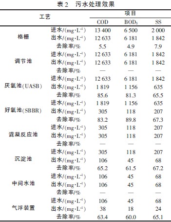 (1)采用UASB—SBBR—混凝—氣浮組合工藝處理馬鈴薯淀粉廢水能夠取得較好的處理效果,出水水質穩定,各項指標均達到《污水綜合排放標準》(GB 8978—1996)中的一級排放標準。