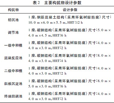 主要構筑物設計參數見表2。