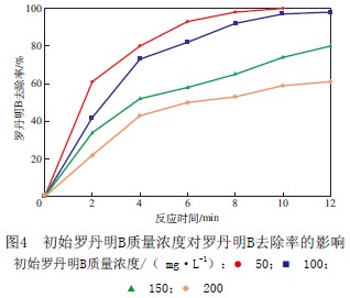 2.4 初始羅丹明B質(zhì)量濃度對羅丹明B去除率的影響