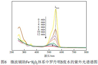 2.7 微波輔助Fe-H2O2體系中羅丹明B廢水的紫外光譜