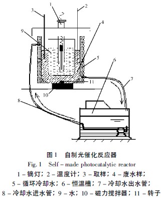 光催化實驗裝置為自制的耐熱玻璃材質的光催化反應器,見圖1,其鏑燈光源光譜十分接近于太陽光譜,可達到太陽光模擬器B 級標準。