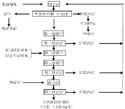 Fig.1 Anaerobic and aerobic treatment process of rice wine lees and other production and living waste water