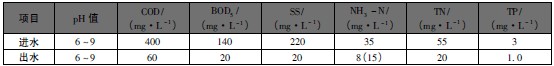 該廠進水中工業廢水比例為60%,生活污水為40%,設計出水水質執行《城鎮污水處理廠污染物排放標準》(GB 18918—2002)一級B 標準(見表1)。