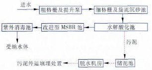 本污水處理廠核心處理單元為水解酸化池和改進型MSBR 池。針對高負荷、來源復雜的原水,在主反應系統改進型MSBR 池前增設水解酸化池,以提高污水的B /C 值,降低后續生化系統的處理負荷。改進型MSBR 工藝在MSBR 工藝基礎上,針對原水水質進行了優化,取消了污泥濃縮段和預缺氧段,延長了缺氧段的停留時間。