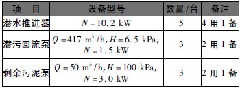 設計特點如下: ①水解酸化池采用一體化環流水解厭氧池,有效緩解了占地緊張的問題,經過水解處理,污水可生化性得到提高。當水解區域的泥量不足時,排泥回流進行補充,使實際運行更加靈活,具有運行效果好、處理效率高的優點。②水解酸化池中沉淀區為斜管沉淀池形式,增大了表面負荷,節省了占地。③水解酸化池污泥回流采用內回流穿墻泵的形式,降低了運行能耗。④改進型MSBR 工藝在MSBR 工藝基礎上,針對進水水質氮高磷低的特點,取消了預缺氧池和濃縮池,縮短厭氧池的停留時間,適當加大了好氧池和缺氧池的停留時間,強化了好氧除碳、硝化和反硝化脫氮效果。⑤將改進型MSBR 池的污泥回流和剩余污泥排放通過八爪型穿孔集泥管有效連接在一起,提高了污泥回流和剩余污泥的排放濃度,將穿孔排泥系統、混合液井和混合液回流泵巧妙地結合在一起,能夠有效降低運行能耗和費用。⑥改進型MSBR 池將低揚程內回流泵和滑閥結合使用,在降低了回流系統能耗的同時,使回流量具備了可調節性。