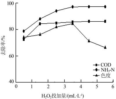 圖 3 H2O2投加量對處理效果的影響