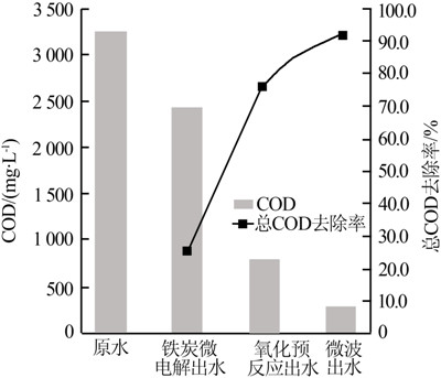 組合工藝對(duì)COD的去除效果如圖 2所示。