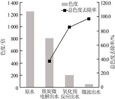 組合工藝對(duì)色度的去除效果如圖 3所示。