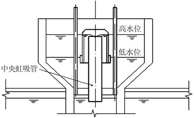 (1)脈沖布水器和顆粒污泥。PAFR內(nèi)設(shè)有自動高效脈沖布水器(見圖 2),僅消耗部分勢能,無潛水?dāng)嚢璧容o助設(shè)備。脈沖布水利用虹吸管中快速流動的水流將主管道中的空氣帶走,使主管道內(nèi)形成一定的真空度,在管道內(nèi)外大氣壓作用下池內(nèi)的水進(jìn)入主管道后排入池中。由于水流速度快,布水在短時間內(nèi)即可完成,達(dá)到脈沖效果。脈沖作用將池底高濃度污泥攪起,使池內(nèi)泥水充分混合,厭氧菌與廢水中的有機(jī)物充分接觸;底部采用穿孔布水管布水均勻,可使泥水充分混合,利用兼氧、厭氧菌等生物群體的綜合作用,提高廢水的可生化性。在PAFR啟動階段,接種在PAFR中的普通絮狀污泥,通過脈沖布水的沖擊作用形成連續(xù)的上升-下降過程,污泥不斷互相碰撞、摩擦,易形成致密結(jié)構(gòu)的顆粒化污泥。