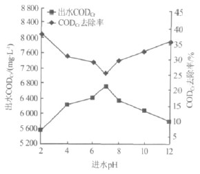 圖1 進水pH 對CODCr去除率的影響